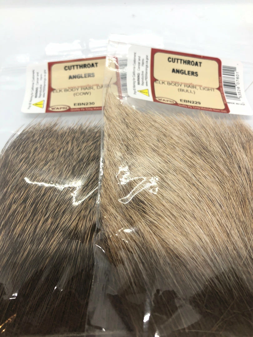 Wapsi Elk Body Hair. Β Available in Dark (cow), or light (bull), the material of choice for the Elk Hair Caddis, and tons of other patterns.