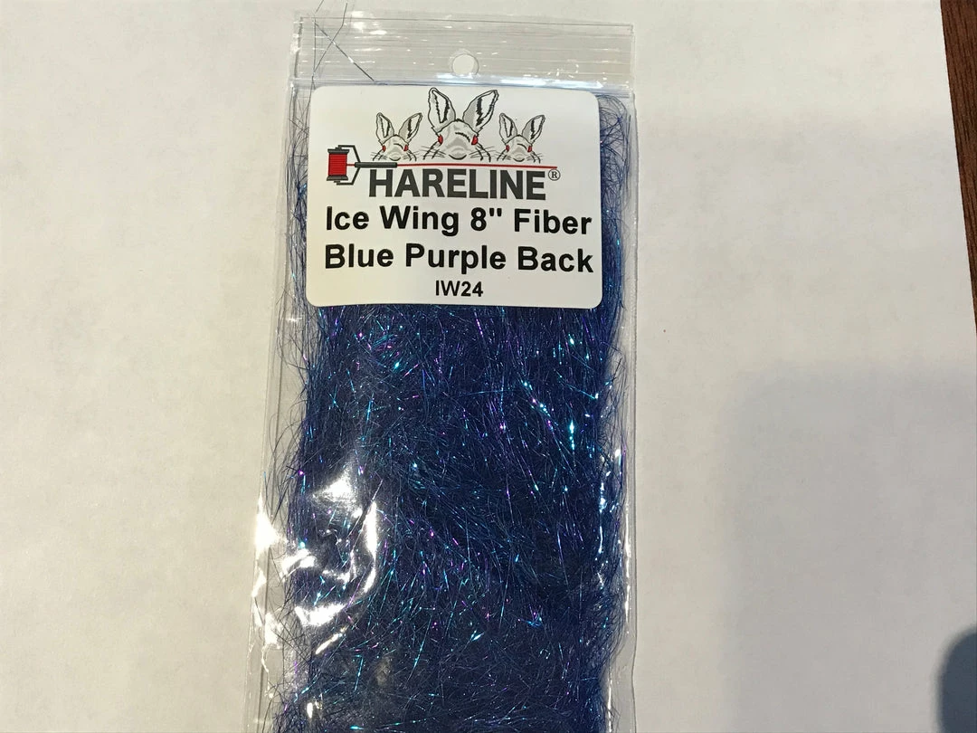Hareline Ice Wing Fiber in 8” fiber lengths. Adds translucent body, and flash to any streamer pattern. Simply chop it up for shorter lengths!