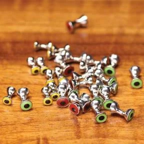 Hareline Tungsten Predator Eyes. Β Tungsten dumbells with built in epoxy eyes, available in several fishy colors. Β A must have for modern streamer patterns!