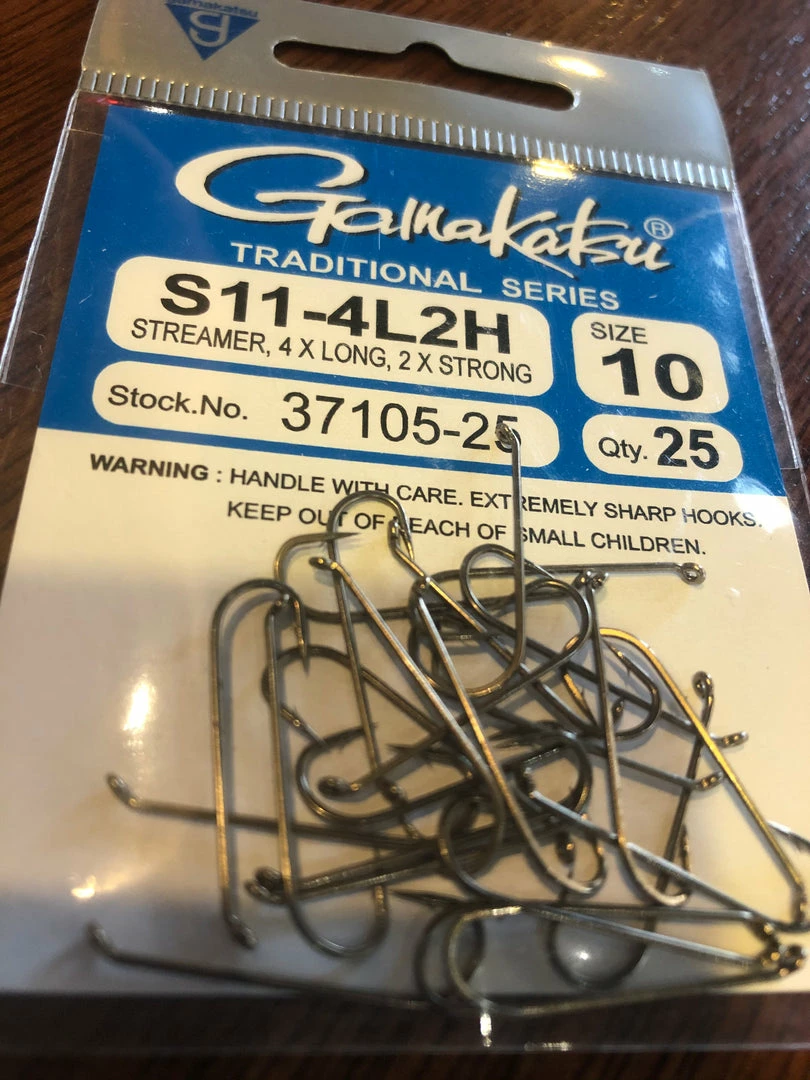 Gamakatsu S11 Streamer Hook 4x Long 2x Strong. Β Traditional 4x Long streamer hook with a nice wide Gape.