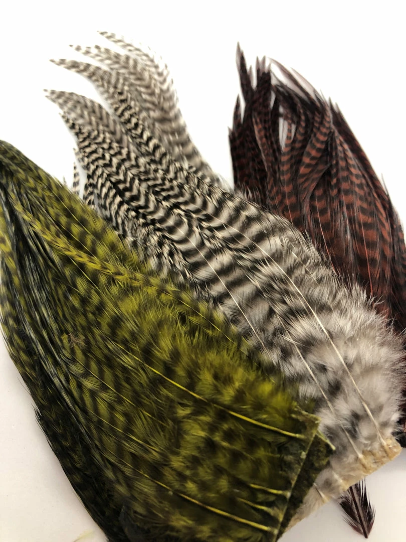 Perfectly sized, and beautifully dyed grizzly hackle for tying buggers, streamers, hoppers, stimulators, and more.