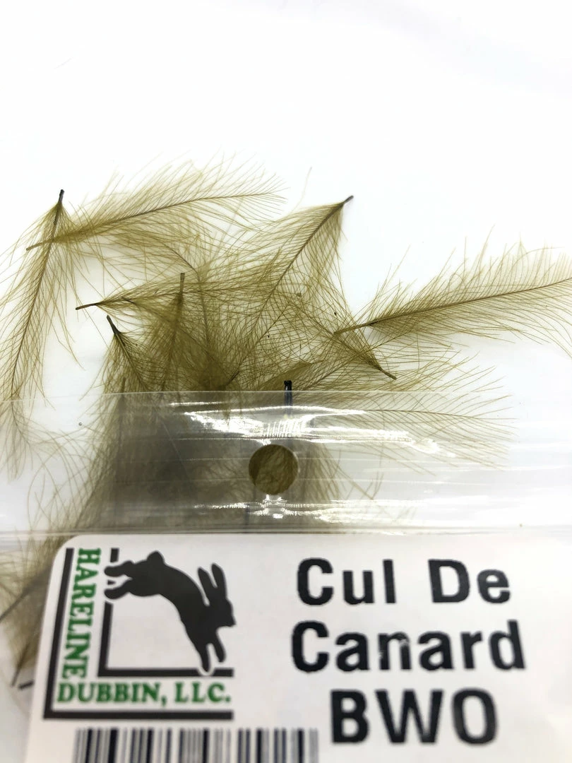 Hareline Cul De Canard. Β A naturally hydrophobic (water resistant) feather, with very fine fibers. Β A great material for creating soft hackle collars on nymphs, or winging material on dry flies. Β Countless other applications also apply, this is one of our favorite materials.