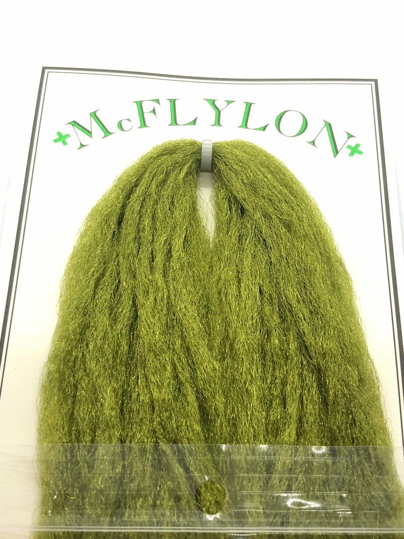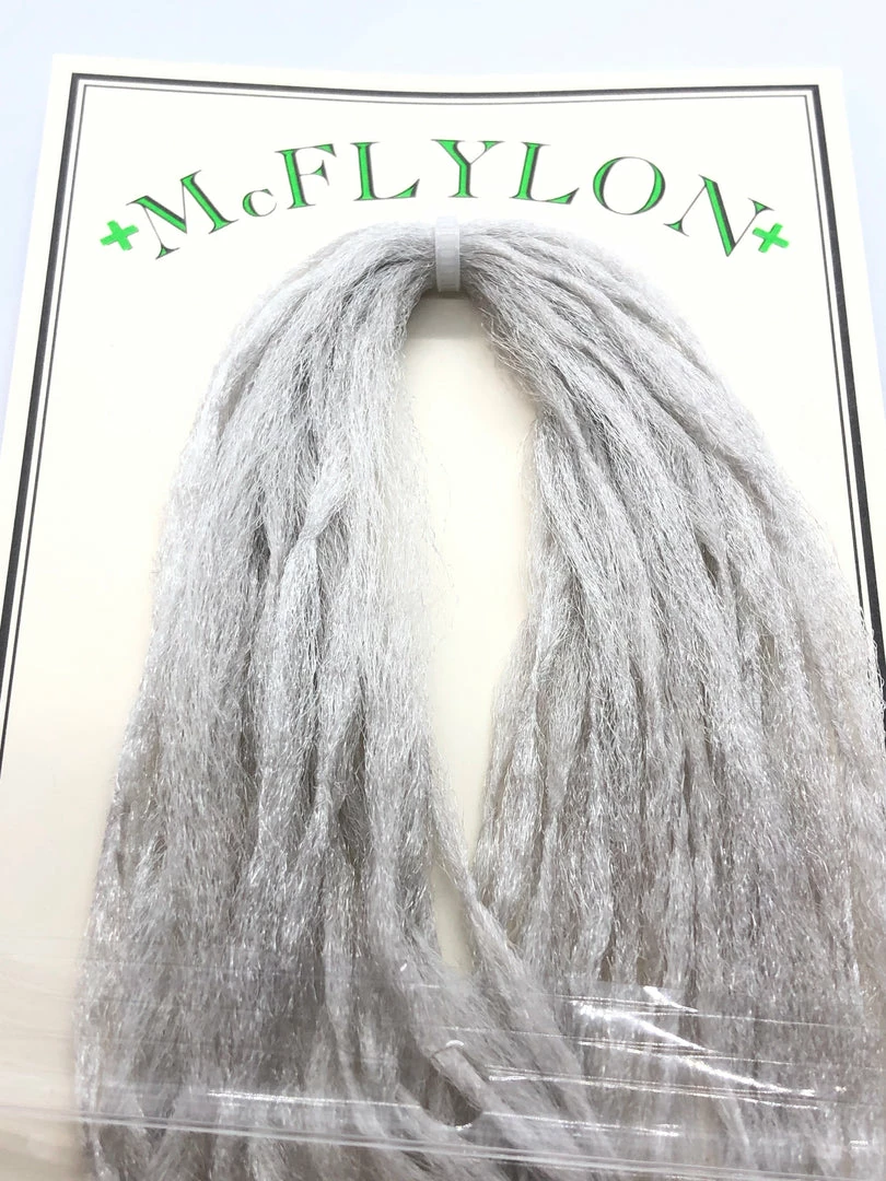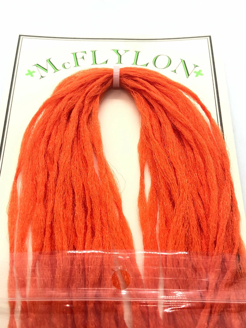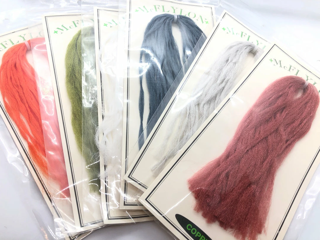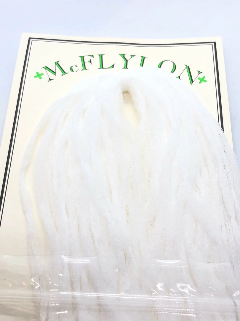 McFlylon Polypropylene Yarn. Β Very buoyant material, does not absorb water, works like a charm for hopper wings! Β Also great for imitating emerger wings, spent wings, trailing shucks, and more! Β In longer lengths these fibers can be used to build baitfish profiles that have life like motion.