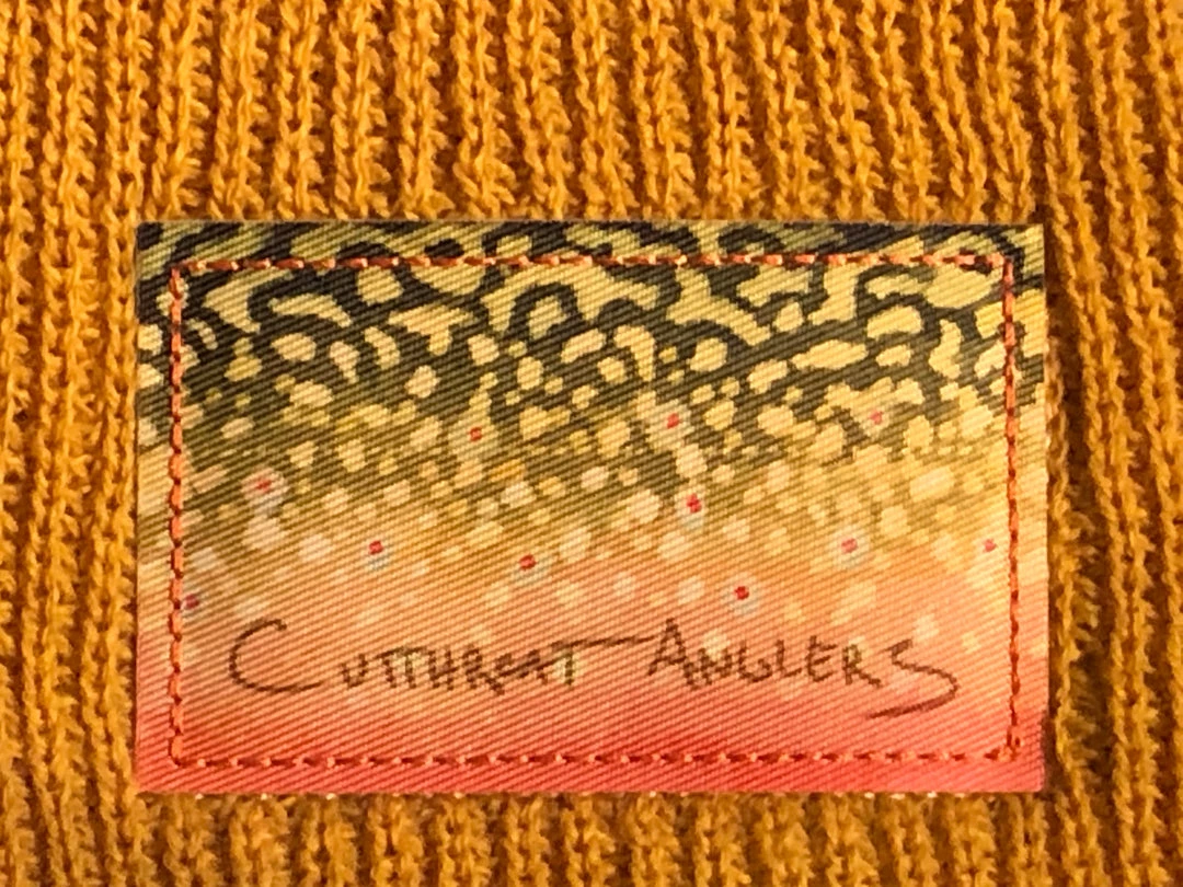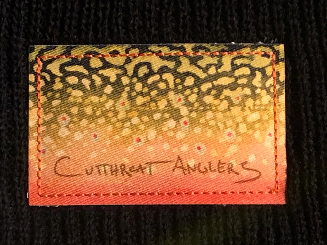 Richardson Slouch Beanie stitched up with a Brook Trout pattern woven label, designed by our very own jacob lutz. Stay warm, comfortable, and unique in this Cutthroat Anglers Custom Beanie!