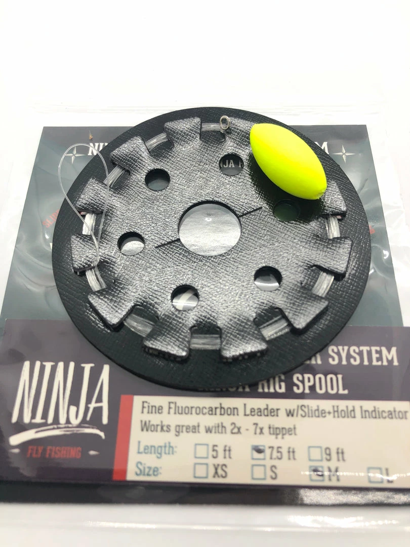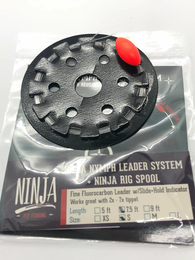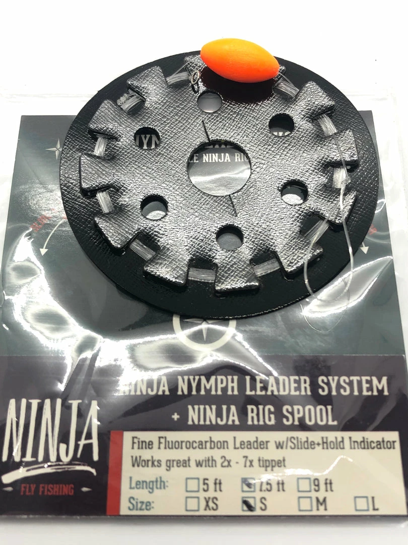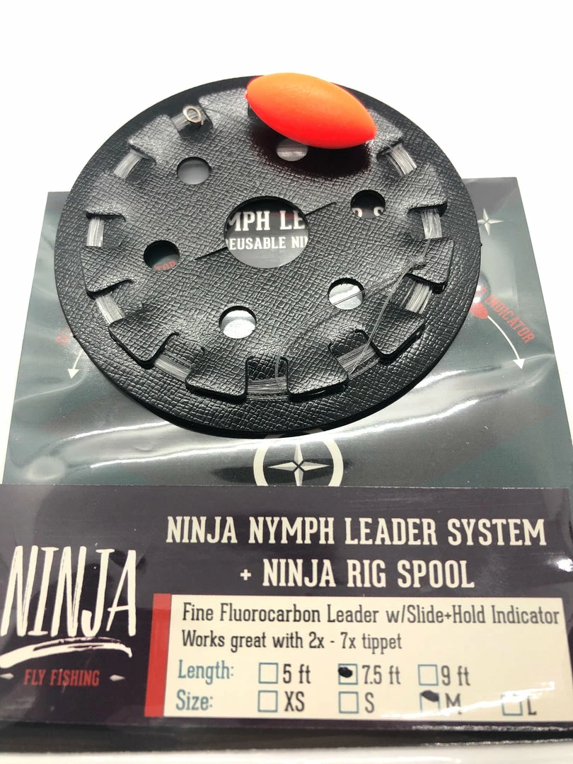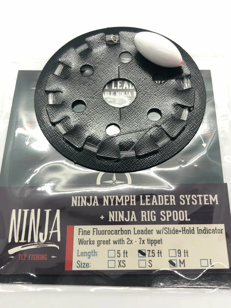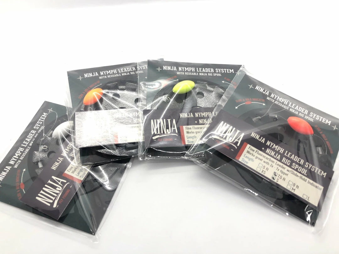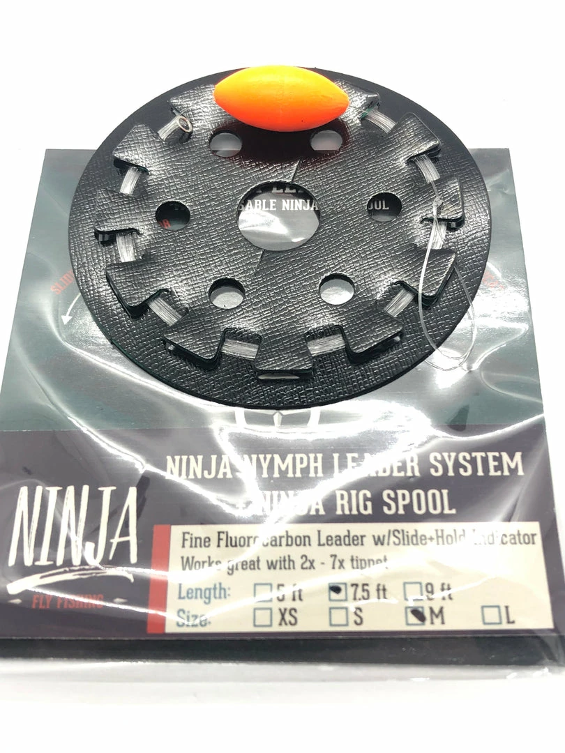 Fluorocarbon leaders with built in foam indicators that can quickly be slid up or down the leader to adjust the depth of your nymphs in the water column. Β Just attach the Ninja System to your fly line with the provided βloop to loop connectionβ, and then tie on a 12β-14β section of your desired tippet to the provided tippet ring, and you will be nymphing effortlessly in no time!