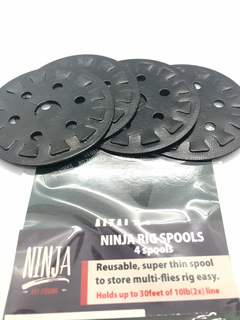 Keep your Ninja Leader System neat and ready to go with these rig spools! Β Also works for any other brand of leader, or for pre-rigging double and triple fly set ups. Β Reduce rig up time, and spend more time fishing!