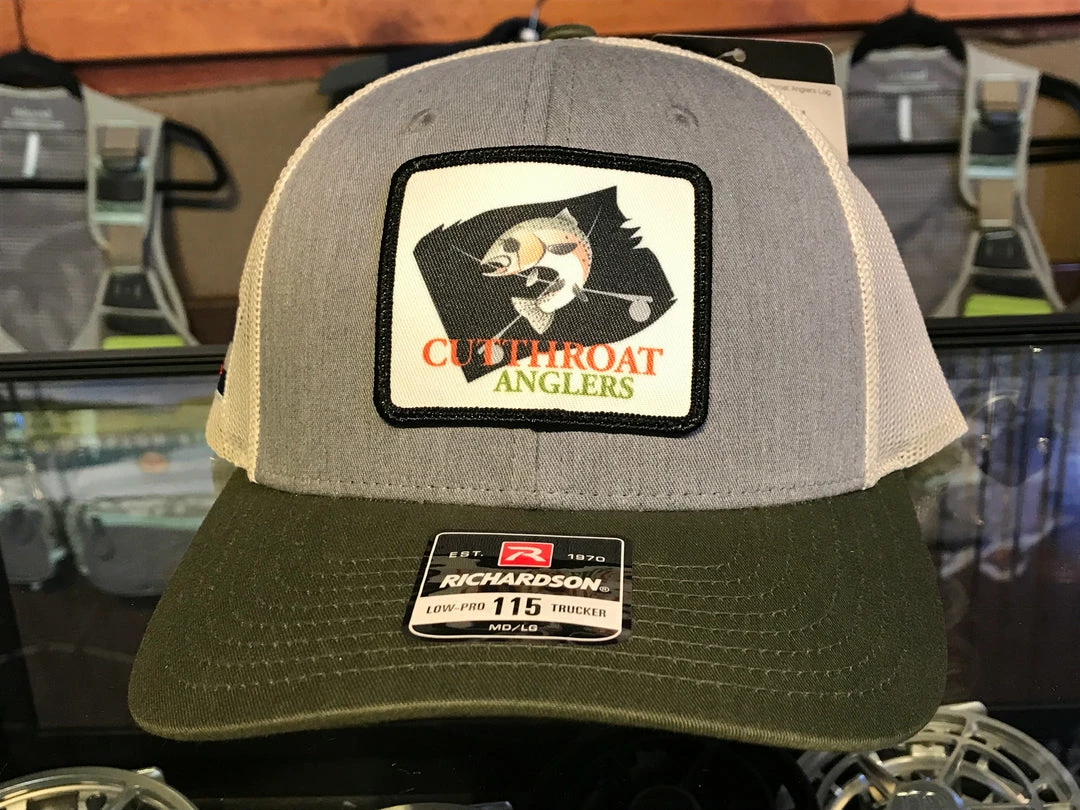 Richardson brand hats with custom Cutthroat Anglers logo patches and embroidery.