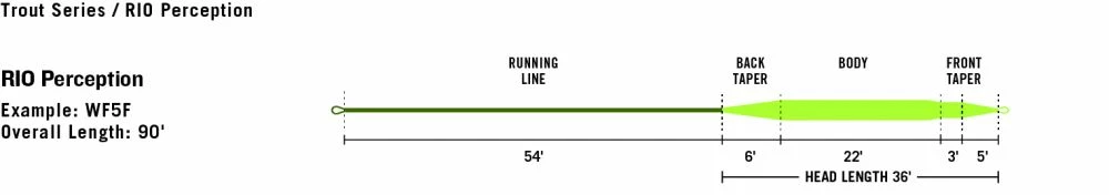 The RIO PERCEPTION is an easy casting, general purpose fly line that casts nymphs, dry flies, streamers and soft hackles with ease. The short head makes this a particularly good line on smaller rivers and lakes when long distance line control is not necessary.Β