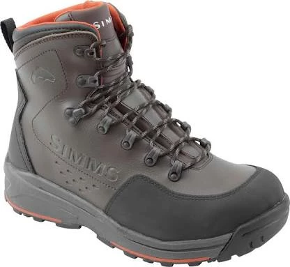 Navigating strong currents and slippery rock riverbeds is part of the experience. Simms Freestoneยฎ Wading Boots – Rubber Soles has a proven record of durability and traction in rocky rivers around the world. It provides the support underfoot and at the ankle for negotiating slick, unseen river bottoms. The synthetic uppers take the abuse of brush, rock, and water in stride, while a cushioned midsole and partial neoprene lining provide all-day cushioning and warmth.