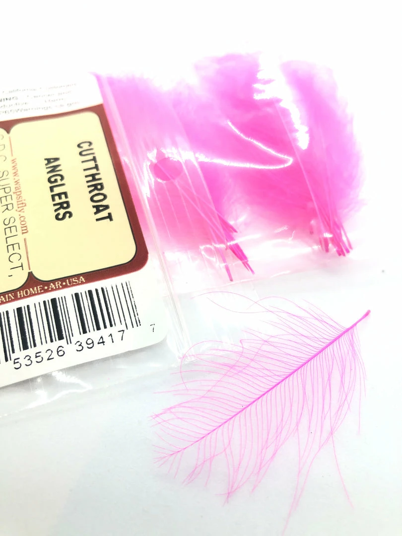 Wapsi CDC Super Select Feathers. Β These are specially selected duck feathers that contain natural oils. This makes them perfect for extra buoyant dry flies, and also creates realistic motion when used in soft hackle collars for nymphs. Β These naturally oily feathers can also trap air under the water, mimickingΒ a the trapped air bubbles seen in emerging insects.